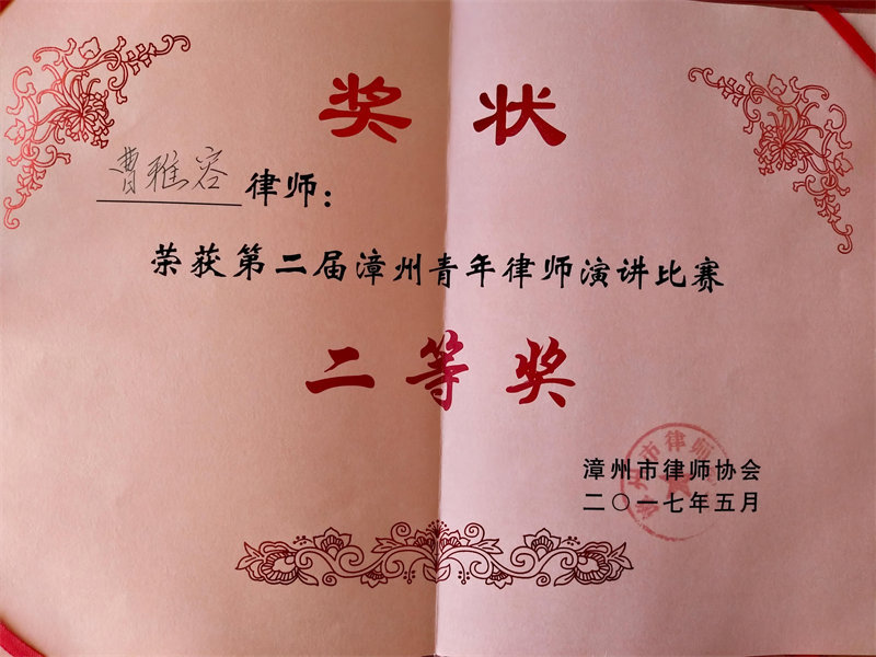 曹雅容律师荣获第二届漳州青年律师演讲比赛二等奖