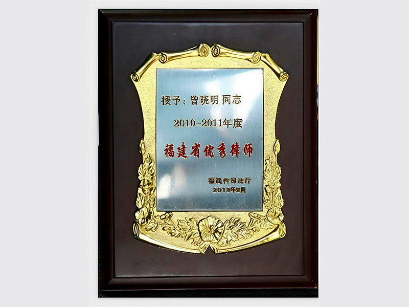 曾晓明律师荣获2010-2011年度福建省优秀律师