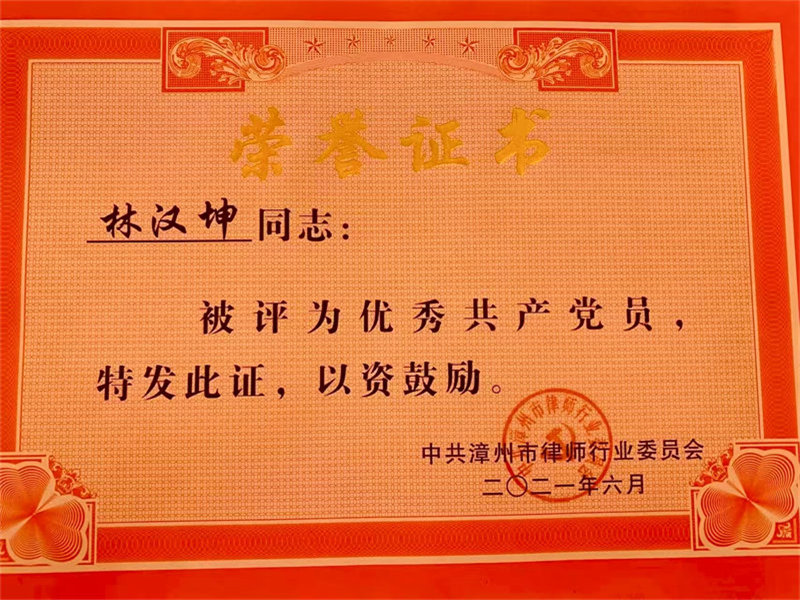 林汉坤律师荣获漳州市第一届篮球赛最佳球员