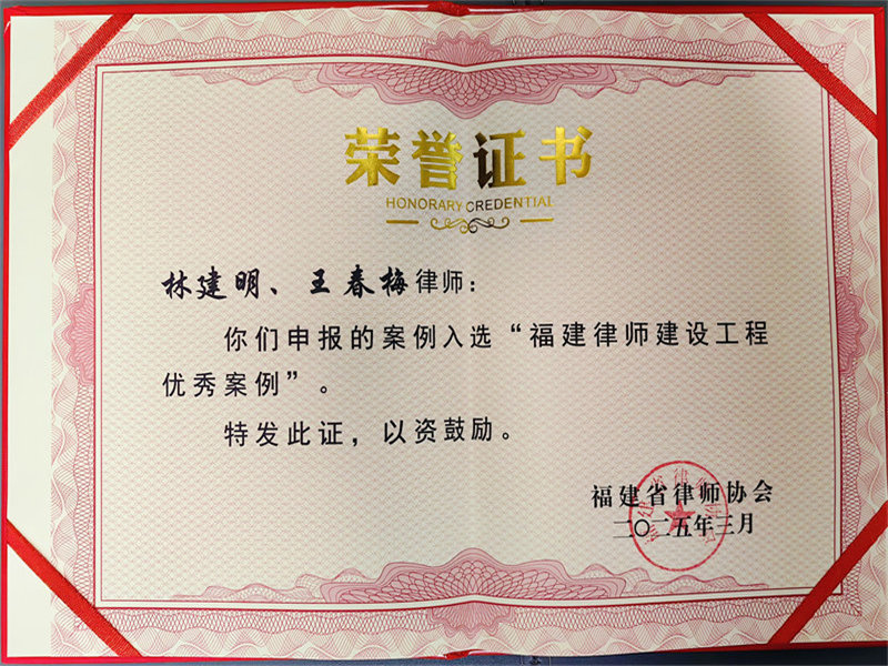 林建明律师、王春梅律师经办案例入选“福建律师建设工程优秀案例”
