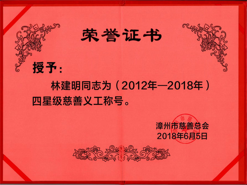 林建明律师荣获(2012年-2018年)四星级慈善义工称号