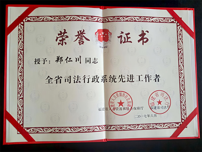 郑仁川律师荣获全省司法行政系统先进工作者奖章
