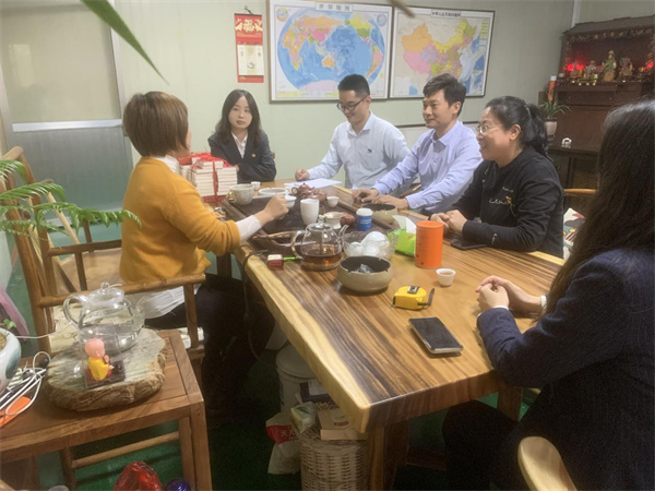 ▲曾晓明律师与司法局走访漳州市百事得家具有限公司